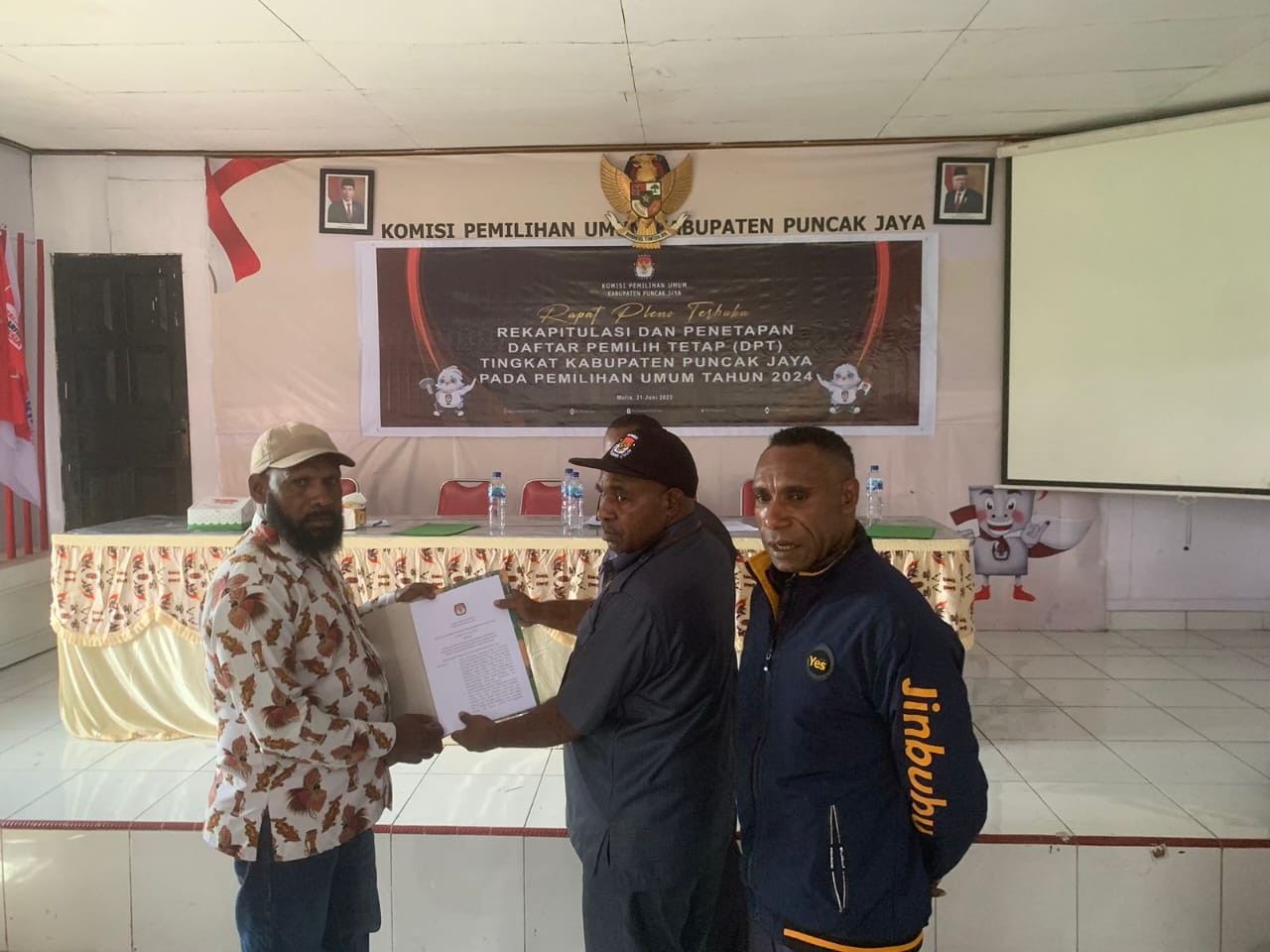 Komisi Pemilihan Umum Kabupaten Puncak Jaya Telah Melaksanakan Rapat Pleno Terbuka Rekapitulasi dan Penetapan Daftar Pemilih Tetap atau biasa Kita kenal dengan DPT Pada Rabu, 21 Juni 2023 bertempat di Kantor KPU Puncak Jaya, Mulia.