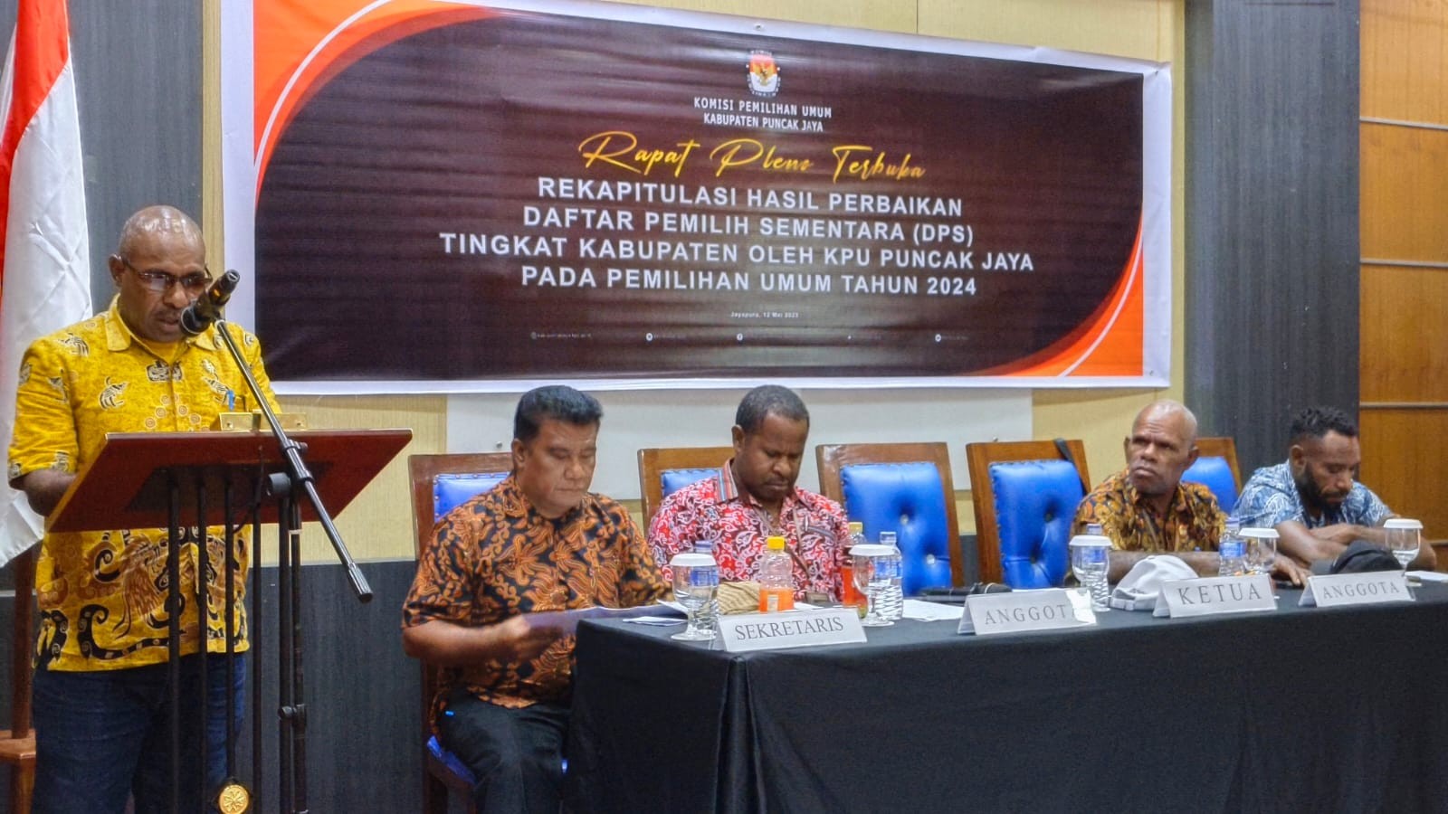 Hari ini KPU Puncak Jaya melaksanakan Rapat Pleno Terbuka Rekapitulasi Hasil Perbaikan Daftar Pemilih Sementara(DPS) tingkat Kabupaten, Pada Pemilihan Umum tahun 2024. Jumat(12 mei 2023)